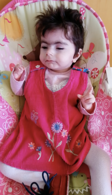 Sweet Emmeline is so young and ready to be loved! Emmeline turns from her back onto her belly and vice versa and has good head control. She tracks moving objects and turns her head towards the sound. She looks at toys, placed close to her by an adult. Emmeline is fed by an adult with a baby bottle. She is capricious and has low appetite. Her sleep is calm and continuous. Emmeline tracks moving objects with her head. She turns her head towards the sound. Emmeline is on regular therapy with Spironolactone. She is diagnosed with Cornelia de Lange syndrome. We hope Emmeline is able to receive love and the best care for her needs while she is so young!
